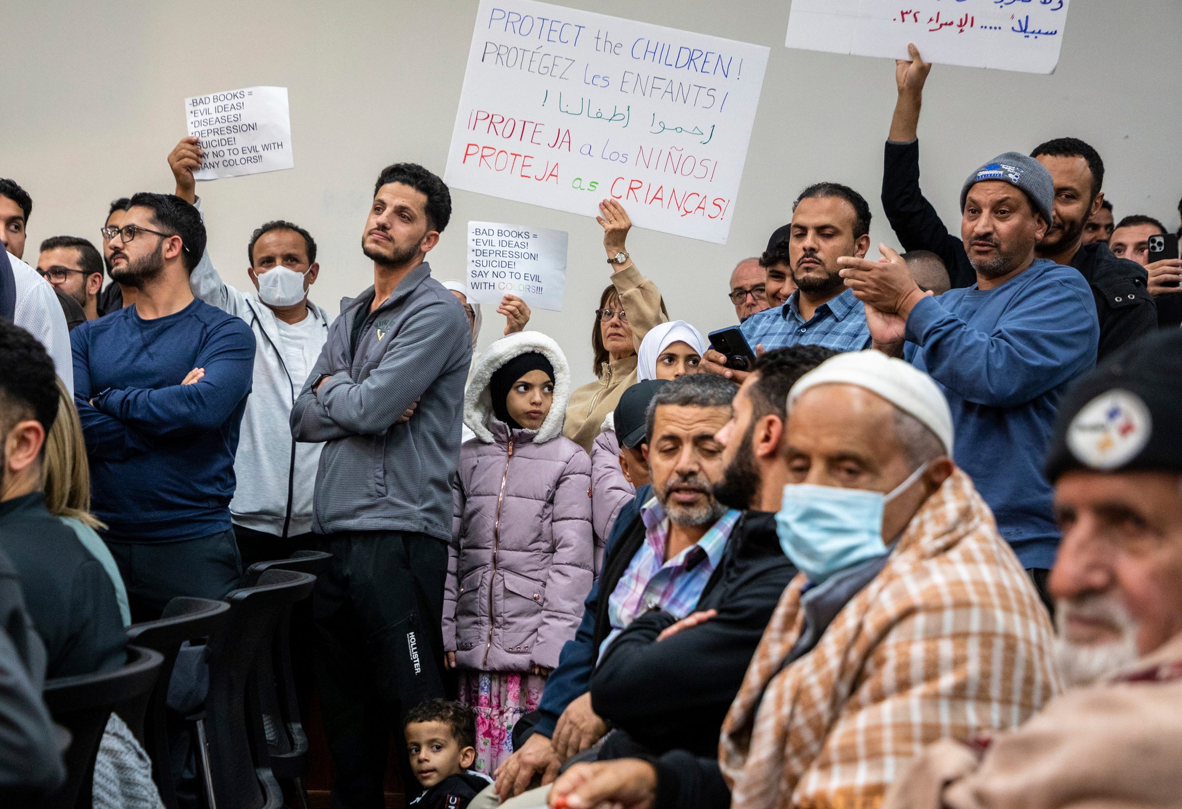 Hundreds of protesters shut down a school board meeting with cries of anger over certain LGBTQ books they said are too sexually explicit for children.